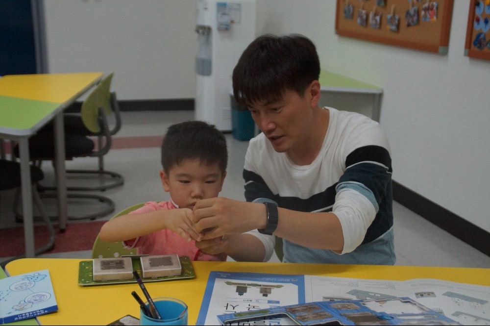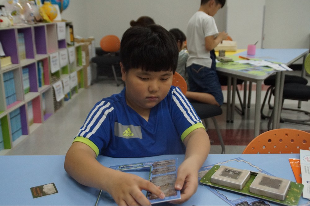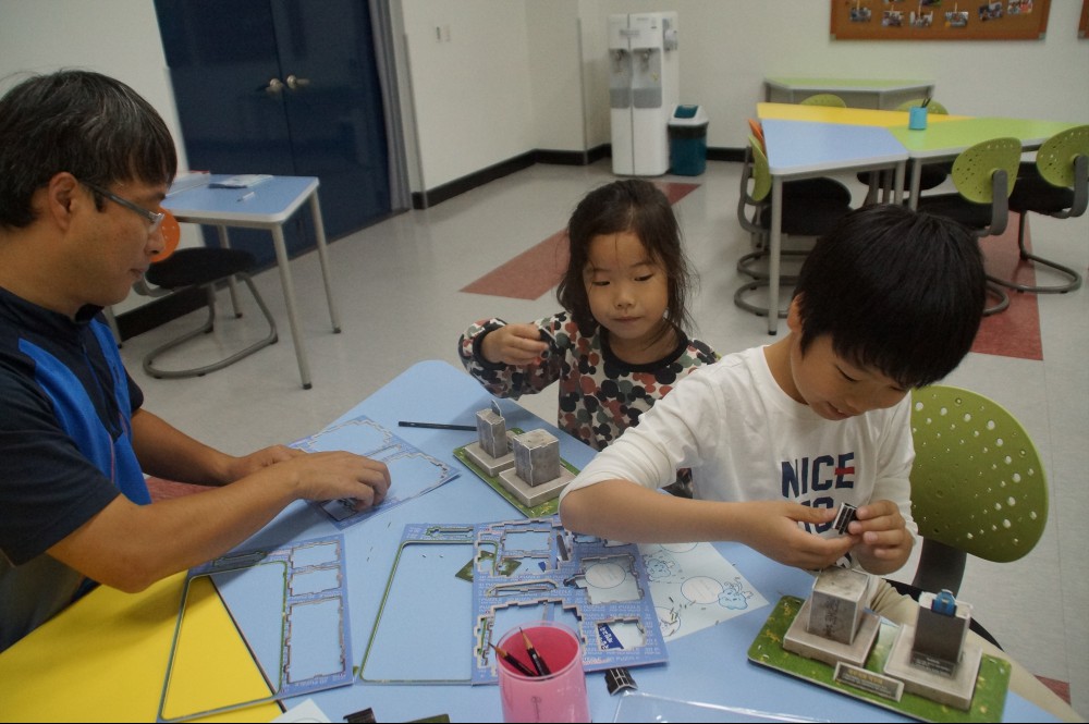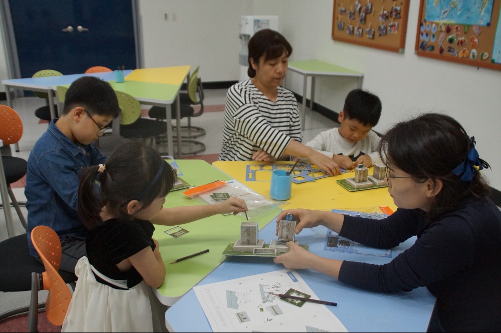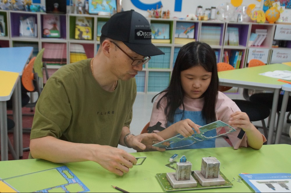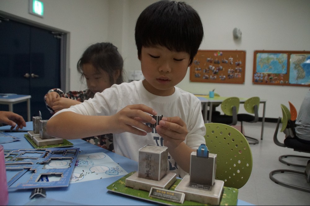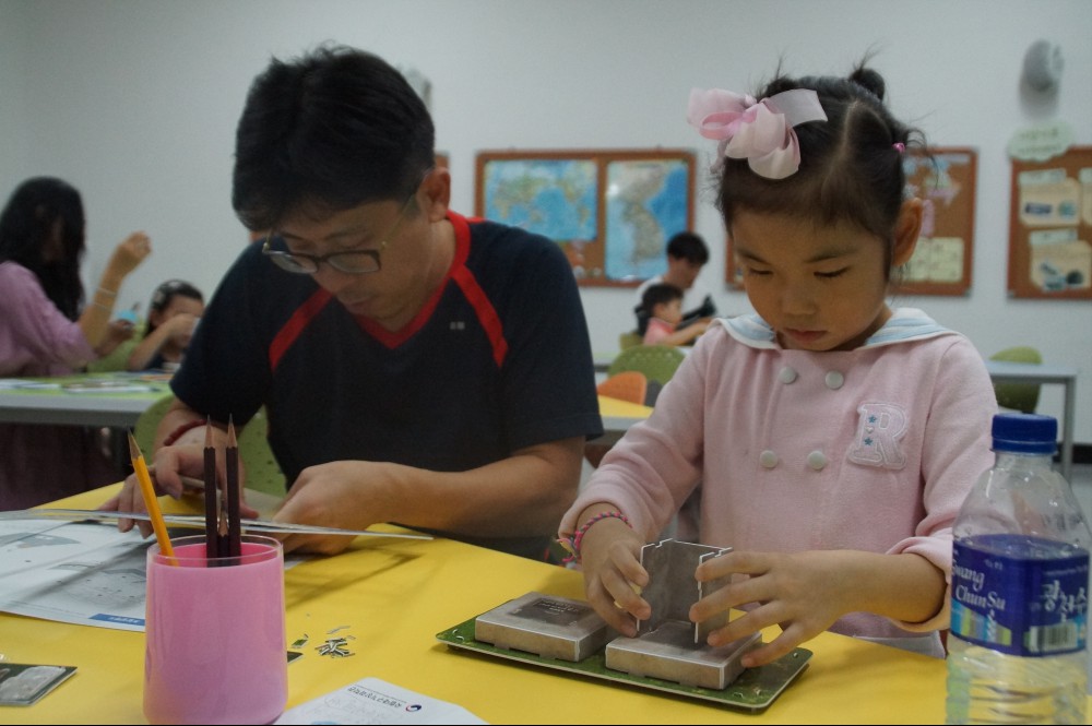 열심히 측우기를 만들고 있는 우리 친구들 너머 보이는 기계!