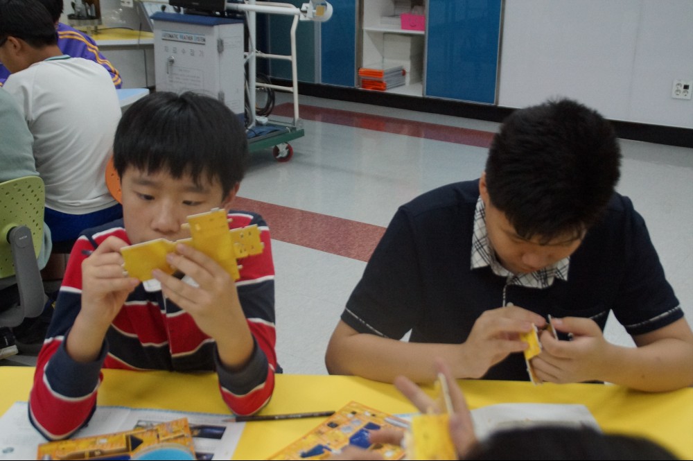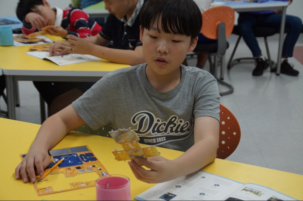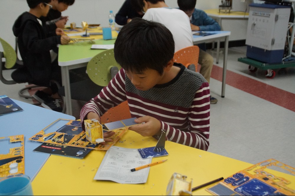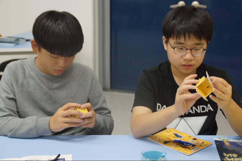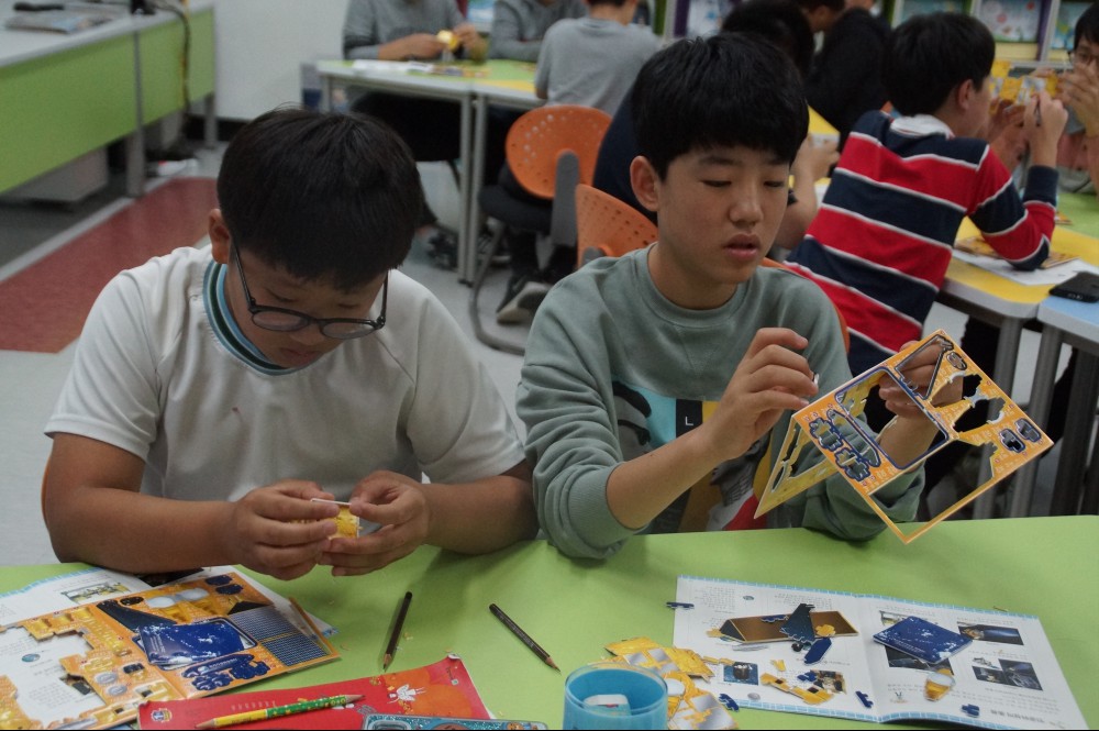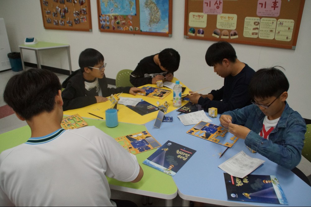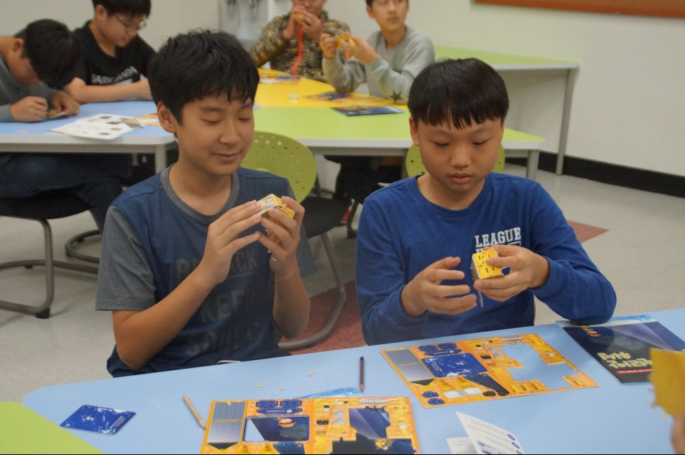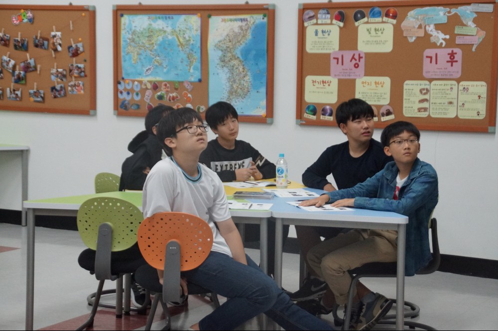 우주의 인공위성에 많은 호기심을 가지고 눈을 반짝이는 경복중학교 친구들!