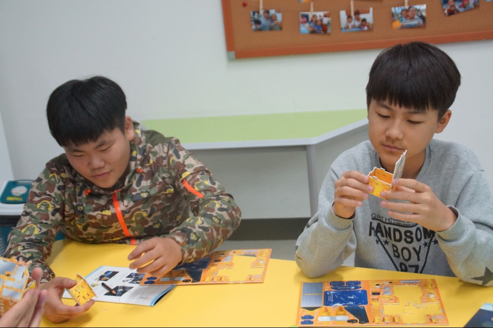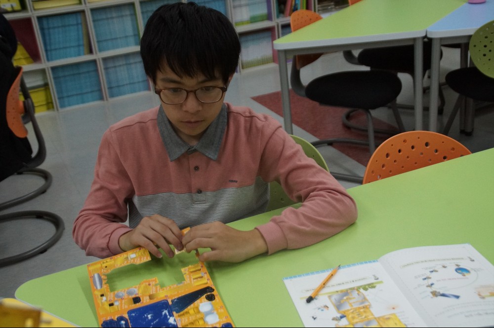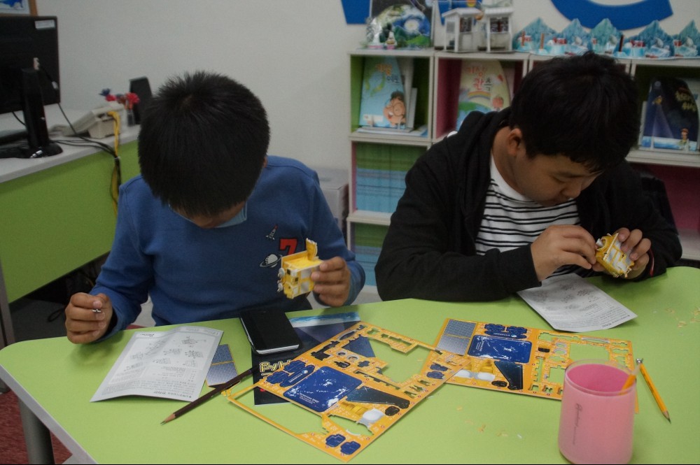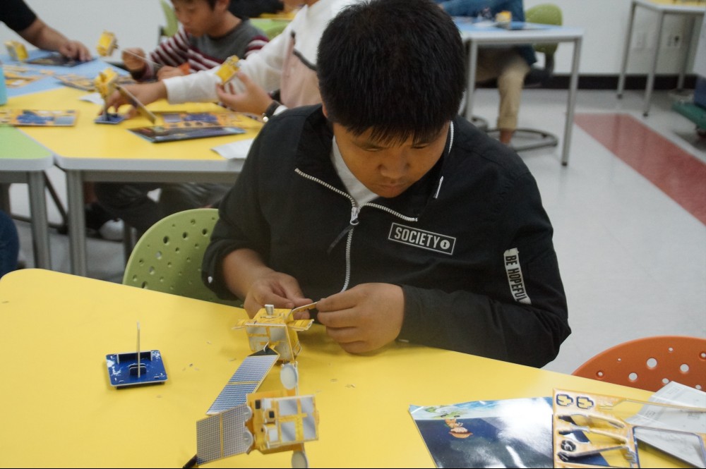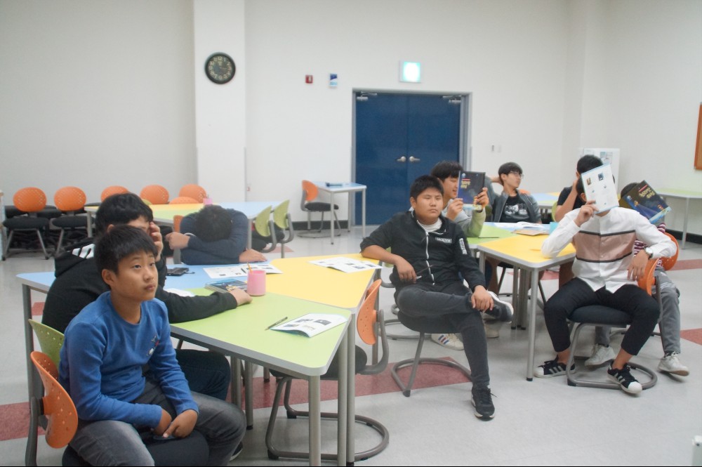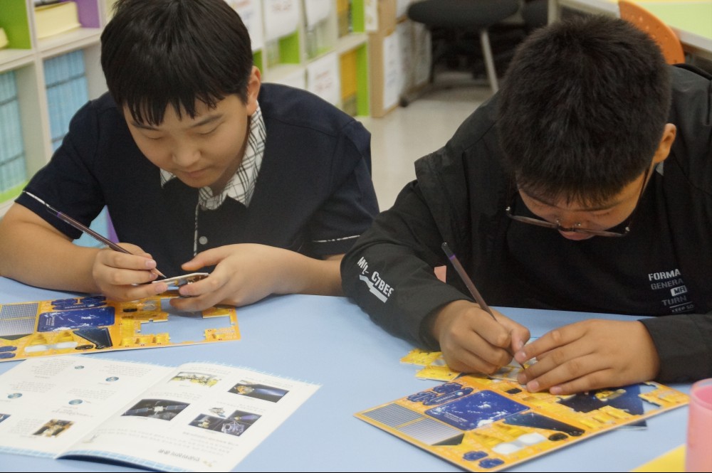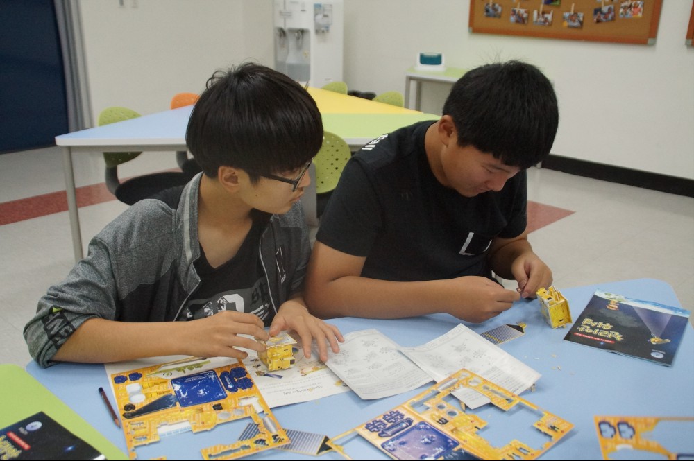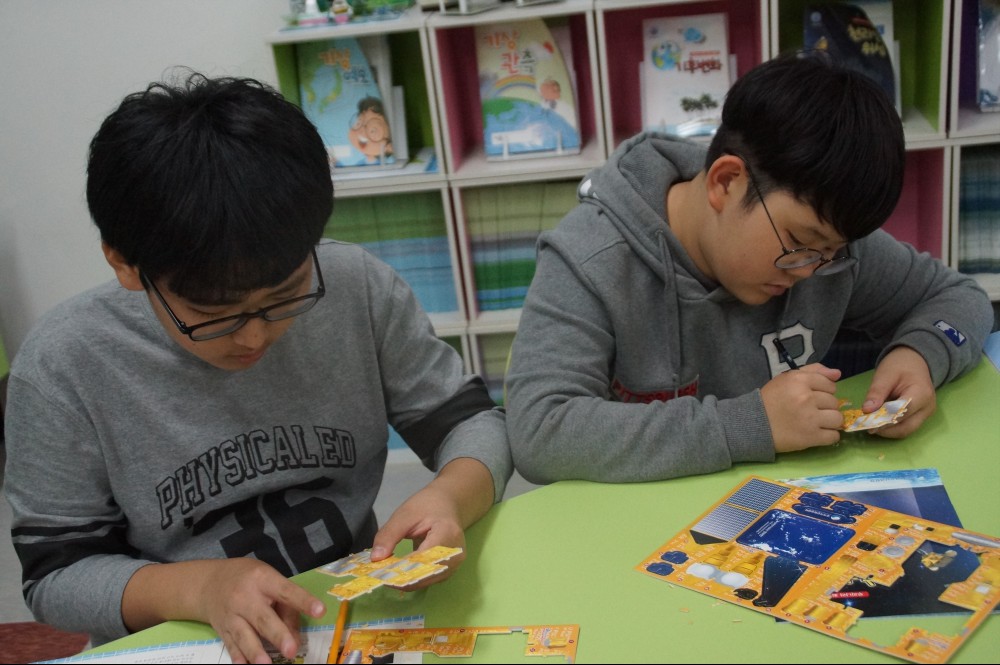 우주의 인공위성에 많은 호기심을 가지고 눈을 반짝이는 경복중학교 친구들!