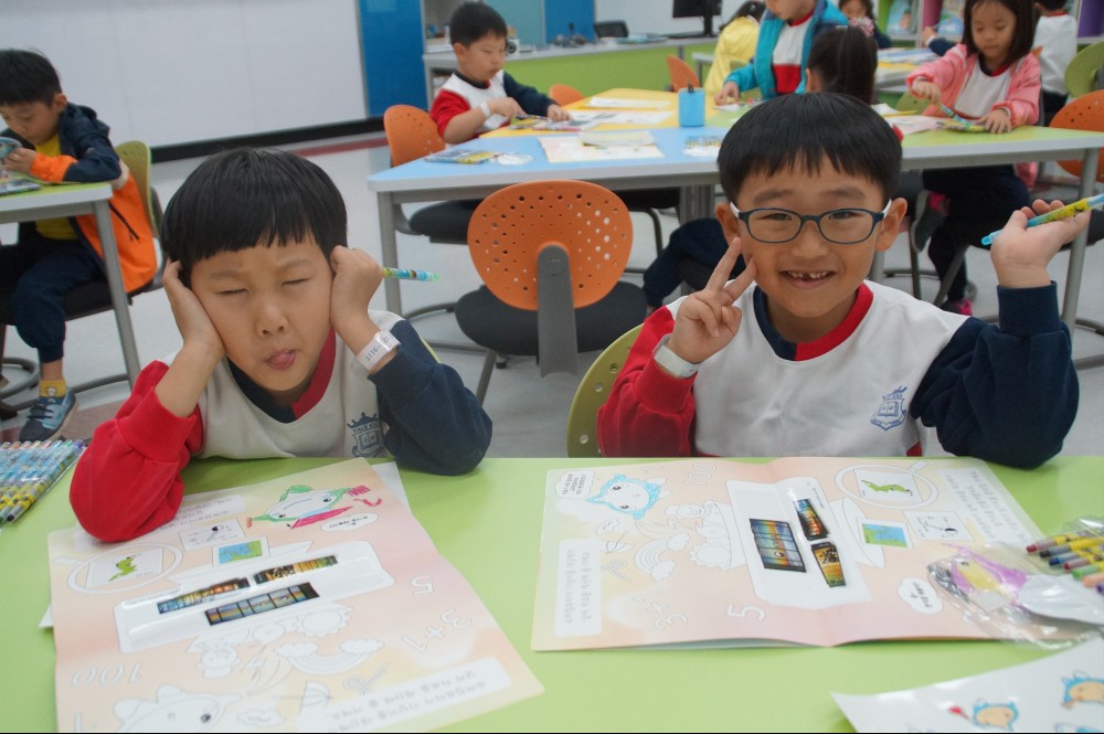 우리 친구들이 색칠하는 책이보이나요?