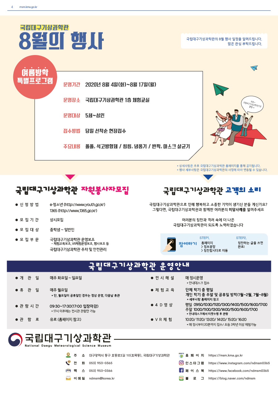 국립대구기상과학관, 하늘애날린 8월호(기상예보관)