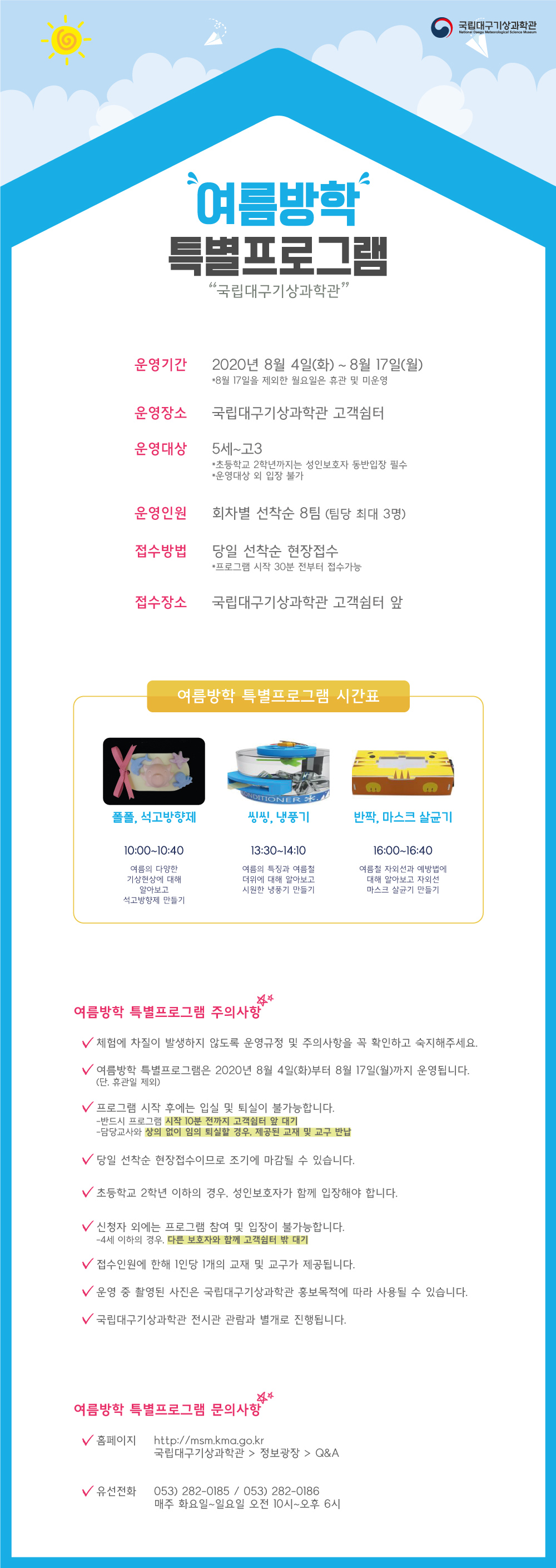 국립대구기상과학관, 2020년 여름방학 교육특별프로그램(8/4~8/17)