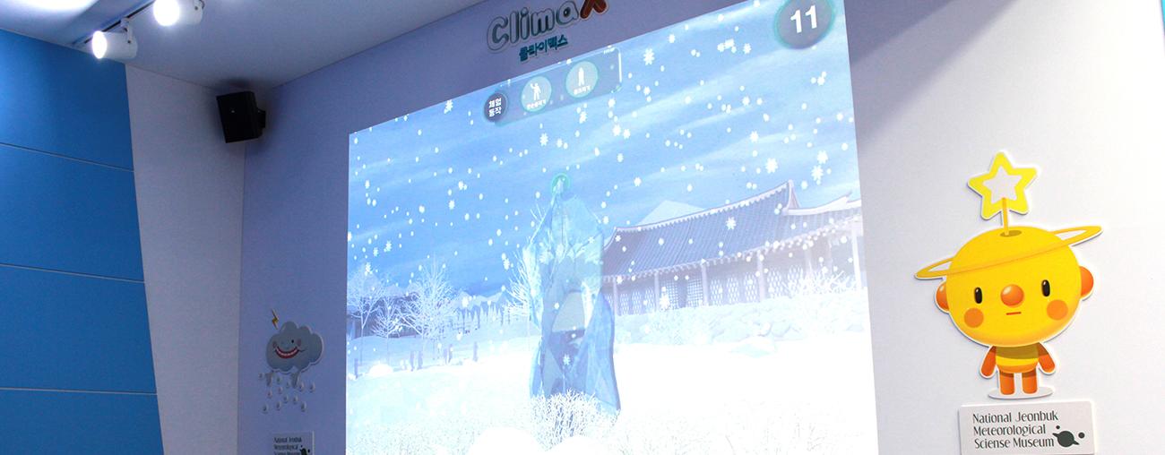 관람객의 행동에 따라 다양하게 변화하는 날씨! 대형 인터랙티브 월스크린을 통해 기상현상을 직접 체험해 보실 수 있습니다.