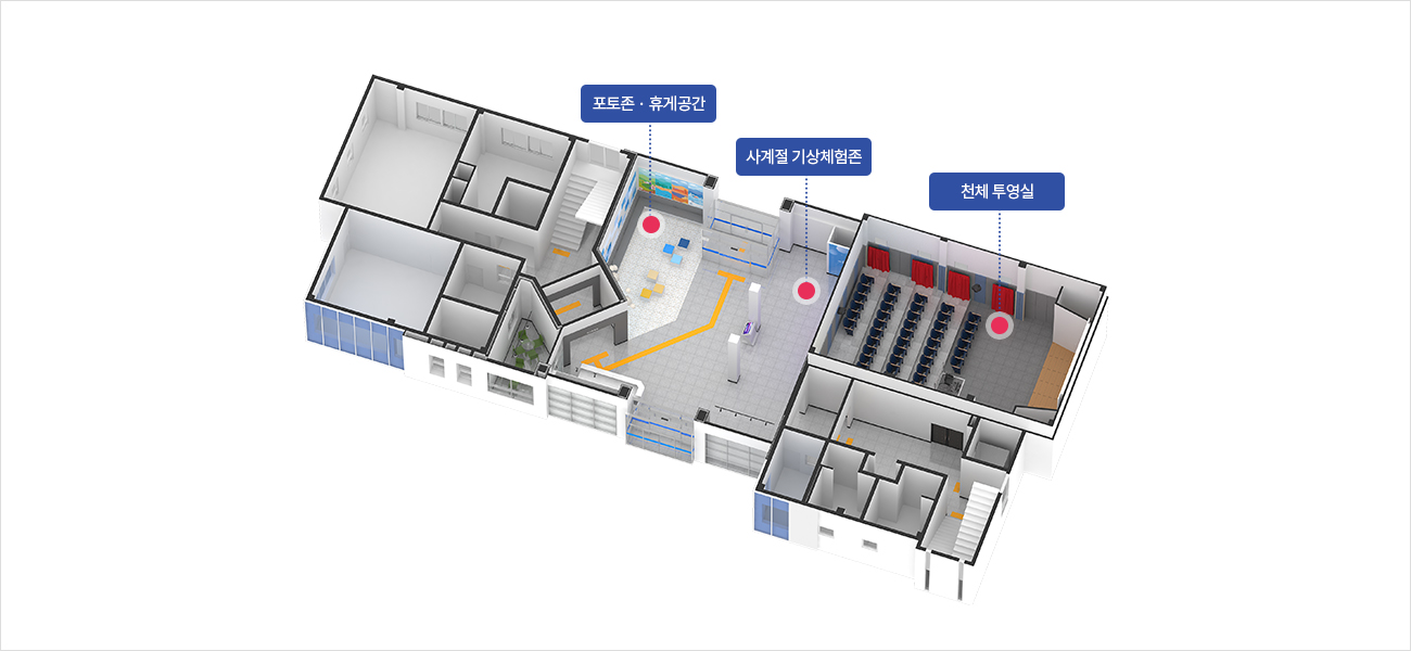 천문 및 기상에 관한 이론 수업과 만들기 체험 등 본격적인 과학관 체험에 앞서 이론을 통한 다양한 지식을 익힐 수 있는 공간입니다.