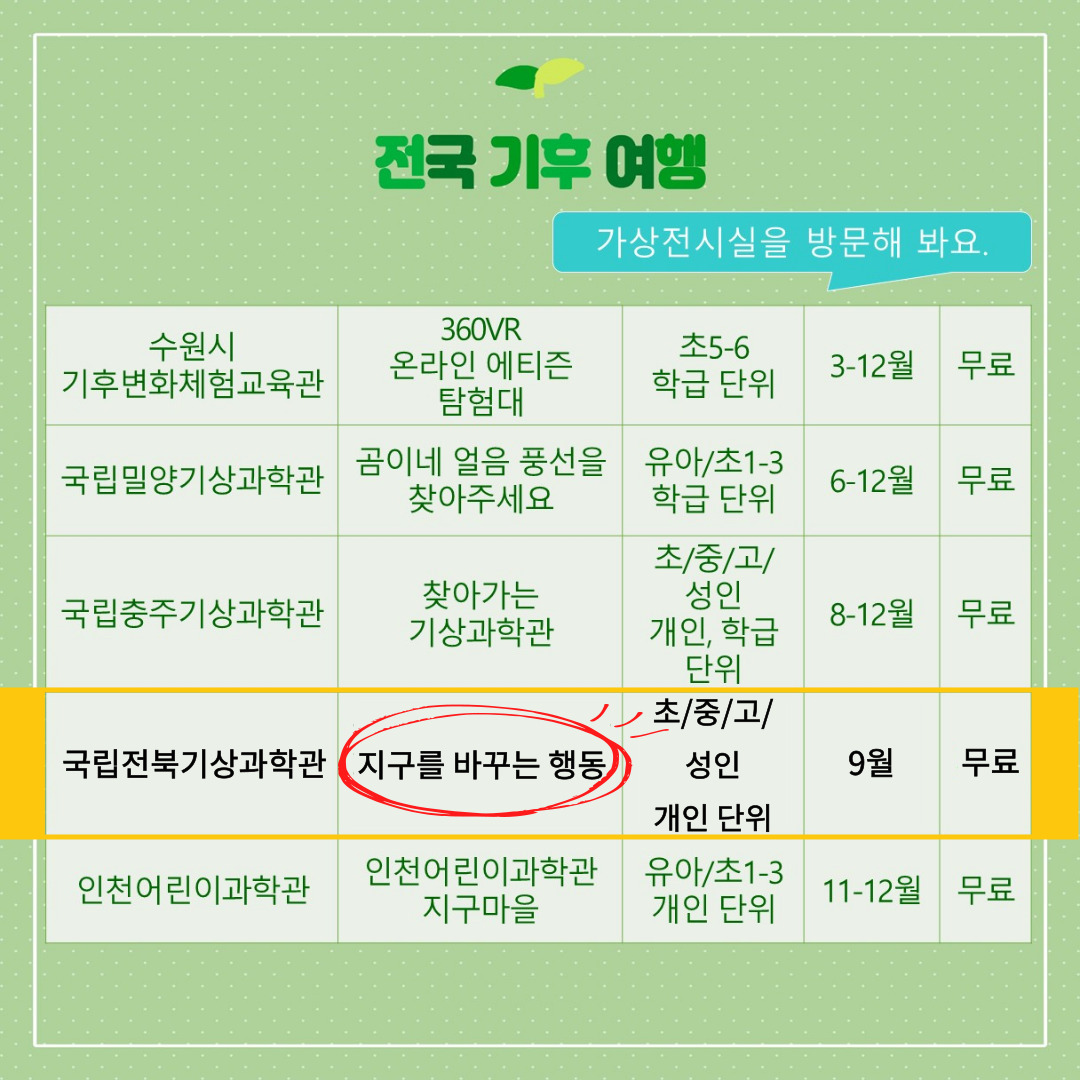 저희 국립전북기상과학관은 <지구를 바꾸는 행동>으로 참여하게 되었습니다.