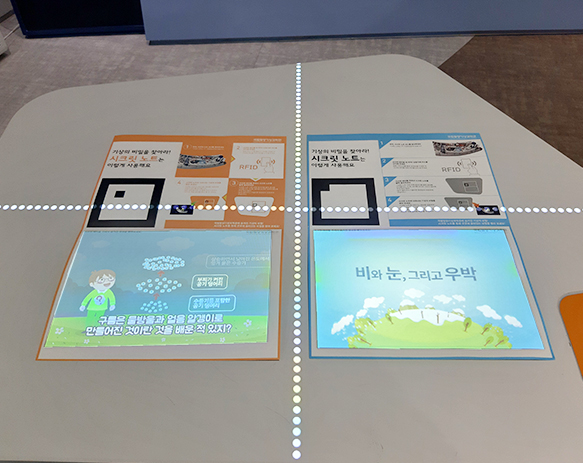 비, 눈, 우박의 생성원리와 종류에 대해 소개하고 천둥과 번개의 생성원리와 특징에 대해 알아 볼 수 있는 시크릿 노트 체험 코너