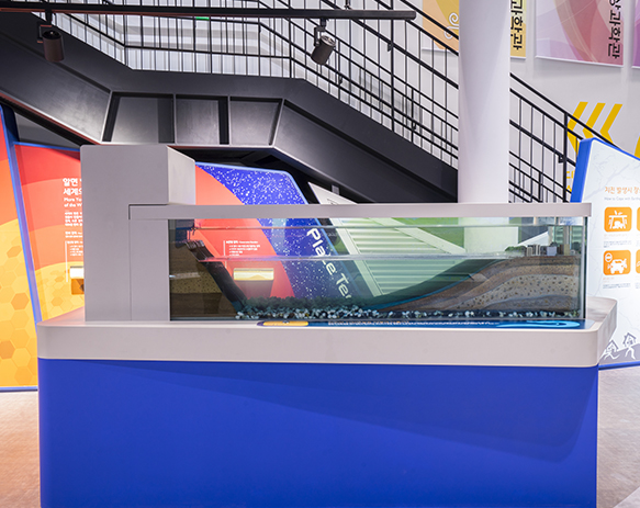 바람에 의한 파도와 지진해일의 모습을 비교 관찰 하며 지진해일이 지상으로 밀려오는 과정에 대해 이해할 수 있는 체험코너