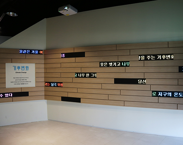 기후변화와 관련된 메시지를 LED 패널로 소개