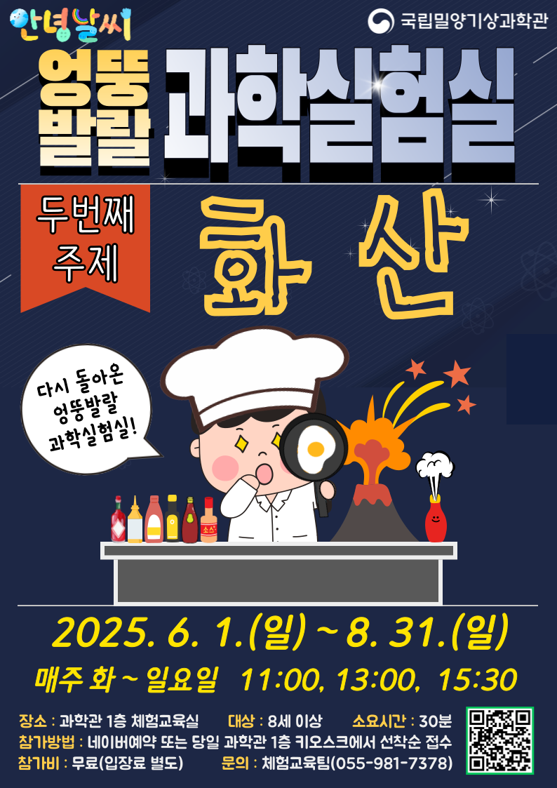 어려운 기상과학의 원리를 과학실험, 놀이형 체험 등으로 재미있게 학습하는 국립밀양기상과학관 체험교육 브랜드입니다.